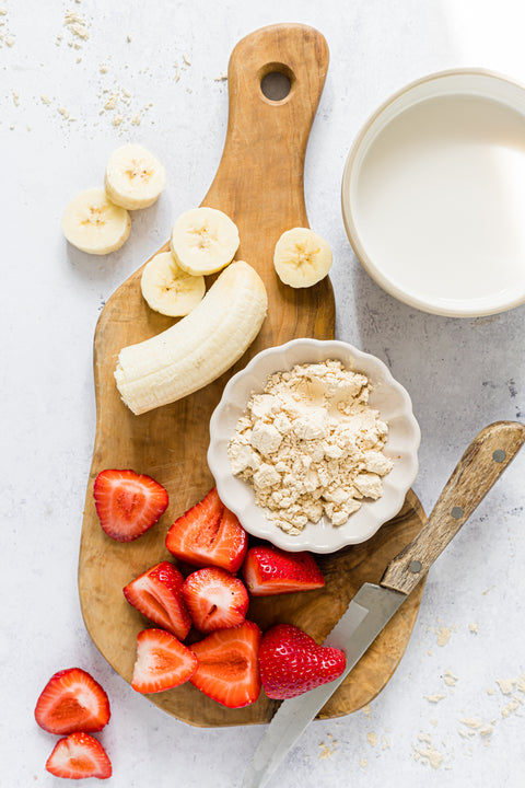 Tip: use chocolate Impact Everyday Grass Fed Whey or Plant protein powder for a Strawberry Chocolate Banana smoothie.